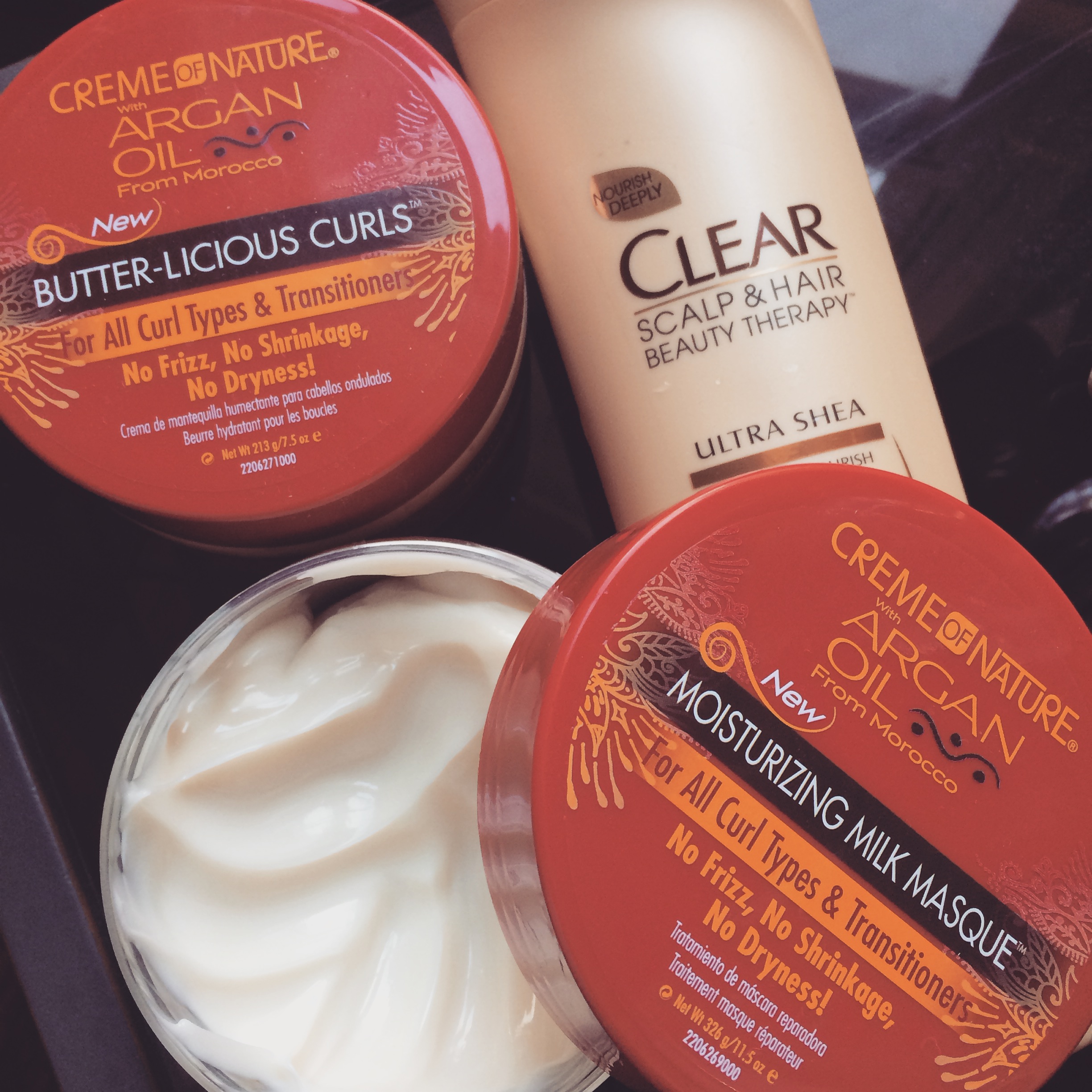 Now on to my new trials, “Creme of Nature” Argan Oil Butter-licious Curls and the Moisturizing Milk Masque. I have been riding with Creme of Nature shampoos and conditioners since High School! I used Mizani relaxer and relaxed my hair about two times a year when I was a teen. I only used Creme of Nature Shampoo and Conditioner for my wash and set days. After shampooing, my hair was left soft, manageable and tangle free. My hair was fairly long so it was always easily tangled and left very dry if I used the wrong shampoo. Today, I’m relaxer free and so excited to see the Creme of Nature is still here to provide products for my curly do. After shampooing, I applied the Milk Masque and covered my hair with a plastic cap. I left the masque on for about 20 minutes and then ran warm water through my hair. The masque felt like a conditioner on my hair. It left my hair super soft and I didn’t need more than that quarter size of conditioner that is recommended on the bottle. I just dabbed a bit on my hair ends for extra moisture.